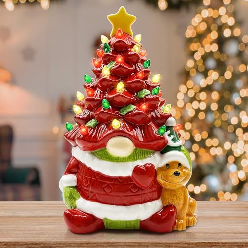SUPERIOR QUALITY CERAMIC CHRISTMAS TREE - This Christmas red gnome is made of superior quality ceramics with adorable color. Red and green colors are bright, beautiful Christmas decorations for home. With delicated craft of ceramic, feels smooth, glows a beautiful light in the daylight and night. Packed with foam insert, easy to store, will be well-protected from damage. GREAT CHRISTMAS GNOME GIFTS FOR WOMEN, MEN, KIDS, GNOME LOVERS.