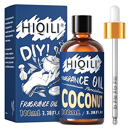 QUALITY PACKAGING: Package includes easy-dispensing glass dropper X1, flow control inner plug X1, light & moisture resistant amber glass bottle X1 and leak-proof bottle lid X1. HIQILI 1x100ml coconut aromatherapy oil is appropriate for any holiday or special event, such as birthday, anniversary, Valentine's Day, Halloween and Christmas gift.