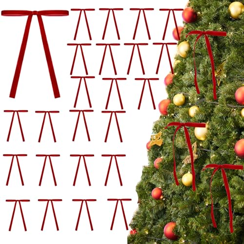 Christmas Bows Set: You will receive 24 pcs Christmas velvet Bows,suitable size for decorate Christmas tree or gift wrapping etc. The material width is 3/8'', the bow is 5 inch width and 7 inch length.You can use them to decorate your Christmas tree,house and gift