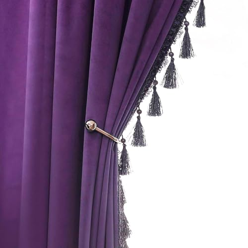 HLISFHIE Blackout Pompom Velvet Curtains for Bedroom