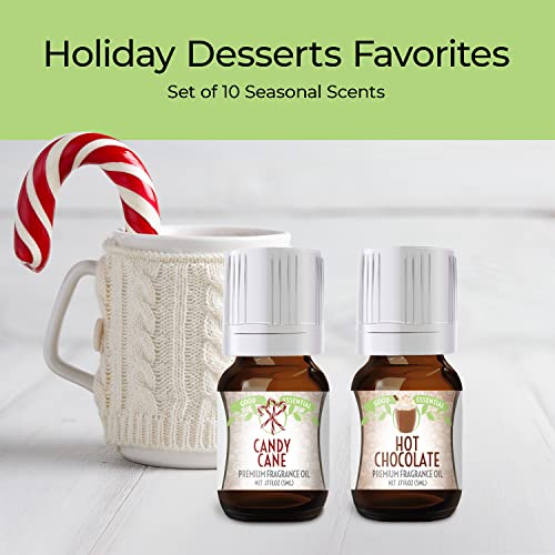 Holiday Desserts Good Essential Fragrance Oil Set (Pack of 10) 5ml Set - Peppermint, Apple Cinnamon, Hot Chocolate, Cherry, Pumpkin Pie, Candy Cane, Gingerbread, Snickerdoodle, Cinnamon, Brown Sugar