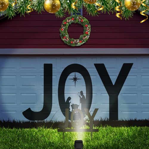 Christmas Nativity Design: the outdoor Christmas decorations designed with black JOY letter and the letter O is designed with nativity scene, serene and sacred, embodying the true spirit of Christmas; This multifunctional set can use as a decoration or paired with spotlights for stunning projection effects