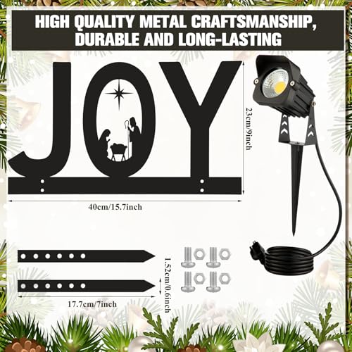 Honoson Christmas Decorations Outdoor Nativity Scene Joy Metal Silhouette Yard Sign with Stakes LED Landscape Light Religious jesus Lawn Decor Joy Metal Art Signs for Yard Lawn Garden Xmas Party Decor