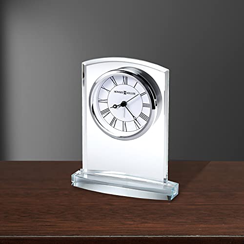 Howard Miller Talbot Table Clock 645-824 – Starphire Glass, Black Roman Numerals, Polished Silver-Tone Bezel, Modern Home Décor, Quartz Alarm Movement
