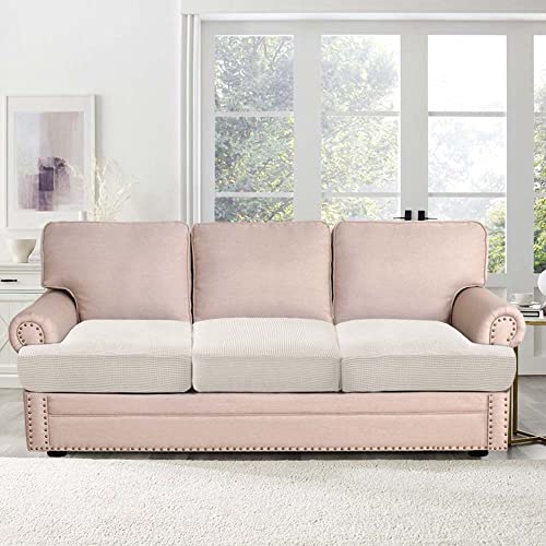 PERFECT FIT FOR T CUSHION: Include 2 T Cushion (same size) and 1 Box Cushion. T Cushion?25-34" length, 22-31" width and 4-8.5" height. Box Cushion?21-28" length, 22-31" width and 4-8.5" height. To perfect for the most of size, it's crafted from thicken soft jacquard fabric with high quality stretch, which not easy to be out of shape. The exclusive design will be more reasonably suitable for your T couch cushion!