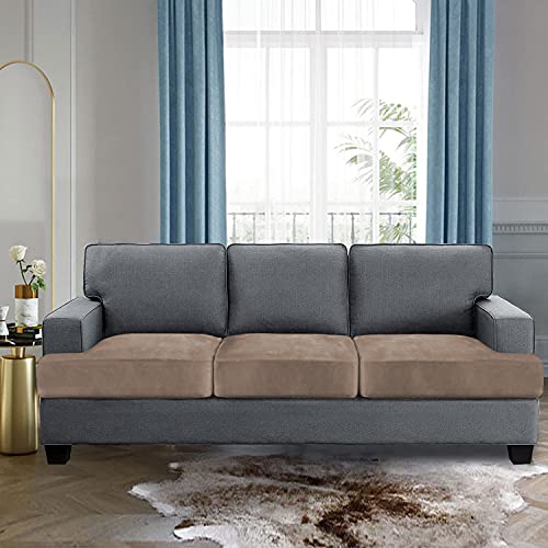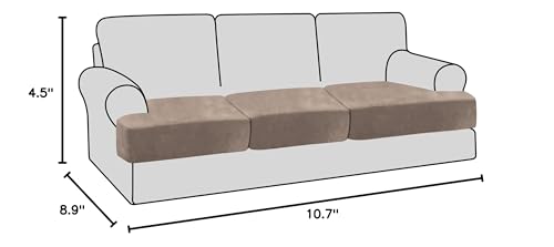 EXQUISITE VELVET: Products passed GLOBAL RECYCLED STANDARD certificate.The superior T cushion cover is crafted from genuine velvet fabric, featuring high stretch thick, smooth, anti-wrinkle, no fading, durable, as well as skin-friendly. This rich velvet cover has a sense of villus, it feels ultra soft. Enjoy every day with this cover, it will create luxury and elegant taste, but reduce messy and worn. High recommended for both leather and cloth sofa