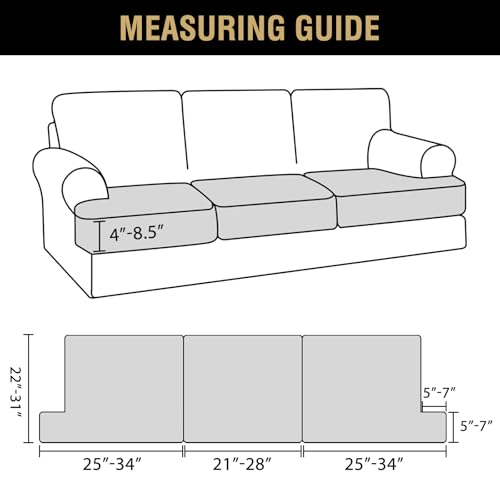STAY IN PLACE: Non-skid thick elastic bottom prevents sliding. And in order to better stay in place, the bottom of cover add three additional elastic straps, except box cushion. Our T cushion slipcovers could stay tight with no snag, no wrinkling, shifting or slipping even on both leather sofa and cloth. It is very easy to put on and take down. (Installation Instructions Included)