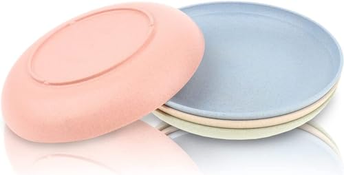 Package Include: In our package of unbreakable dinner plates you will get 4 pieces of plastic reusable plates with four different colors as, green, beige, pink, blue for convenient camping and picnic experience. These unbreakable dishes have size about 9 inches.