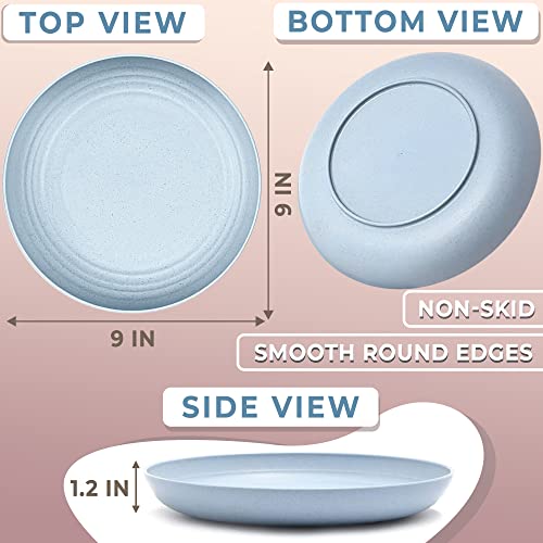 Lightweight Plastic Plates Reusable: Our wheat straw plates and bowls sets have lightweight design with anti-skid plate bottom and smooth round edges. This camping dish set is lightweight, so easy to transport and handle anywhere and anytime.