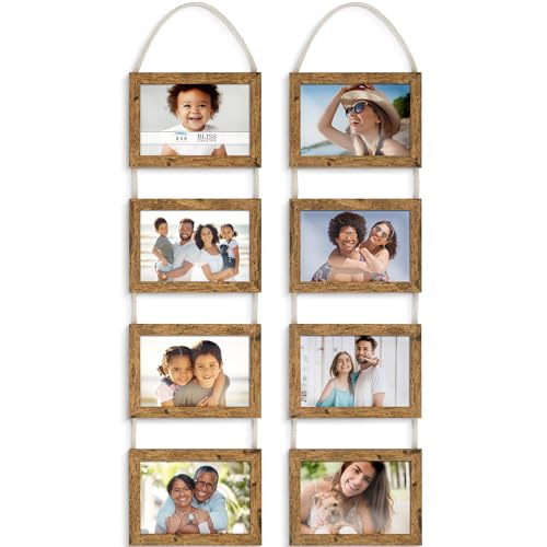 INCLUDES - 2 Pack of 4 Rustic Brown 4 x 6 frames with cotton string for wall hanging (opening reveals approximately 3.5 x 5.5 inch); High-definition glass for clarity and image protection