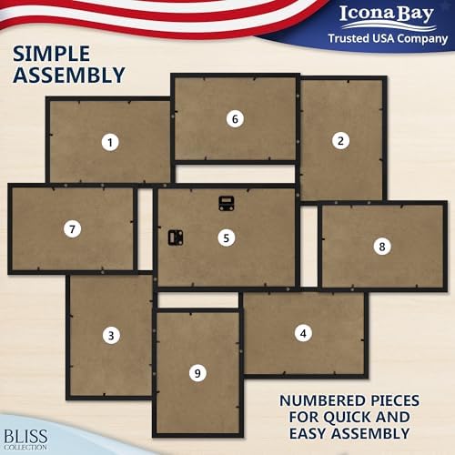 SELF-ASSEMBLY - 1 Ink Black 5x7 frame w/ 8 - 4x6 ink black photo frames, each comes with required screws for easy assembly; Note, please follow watch the video for a hassle-free set-up