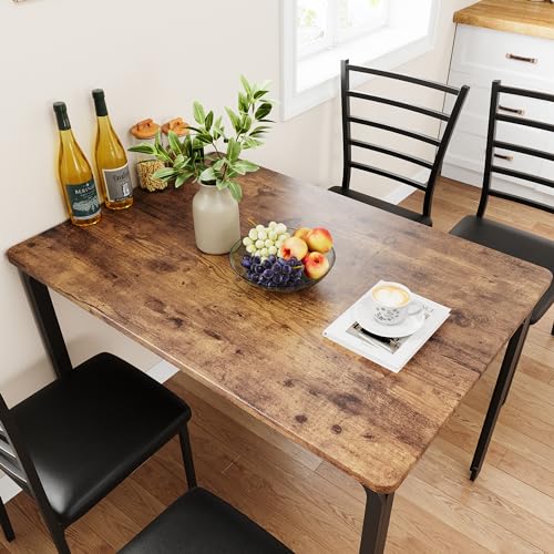 IDEALHOUSE 5-Piece Kitchen Dining Room Table Chair Set for Small Space, Indoor Modern Dinette Set for 4, Square Dinner Table Set for Dinette, Breakfast (Vintage)