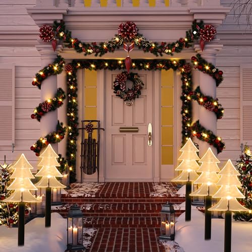 Christmas tree pathway lights: This christmas lights outdoor includes a total of 5 Christmas tree lights, the distance between each two lights is 14 inches, which helps to illuminate a certain area evenly. warm white lights can create a warm and comfortable atmosphere, which is very suitable for Christmas decoration.