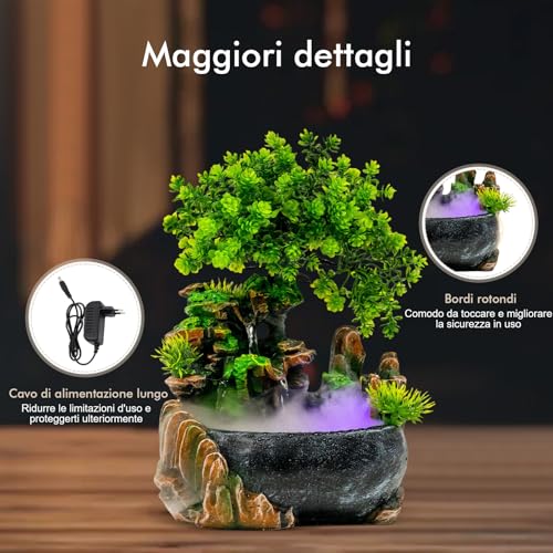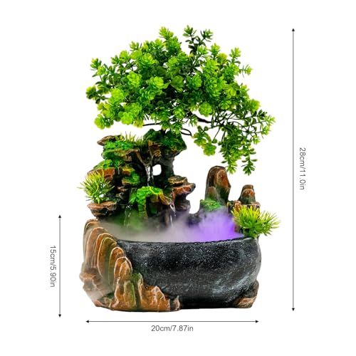Indoor Tabletop Water Fountains,with Color LED Light & ON/Off Switch, Atomizing humidifier Fountain, Small Rockery Stream Tabletop Fountain Waterfall Decor for Home Office Bedroom