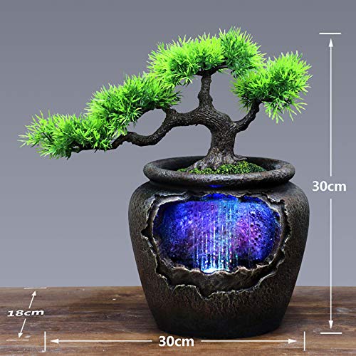 Indoor Waterfall Fountain Tabletop Water Fountain Desk Top Feng Shui Water Feature Cypresses Statue Waterfall Decor with Colorful Led Light for Living Room,Office,Bedroom