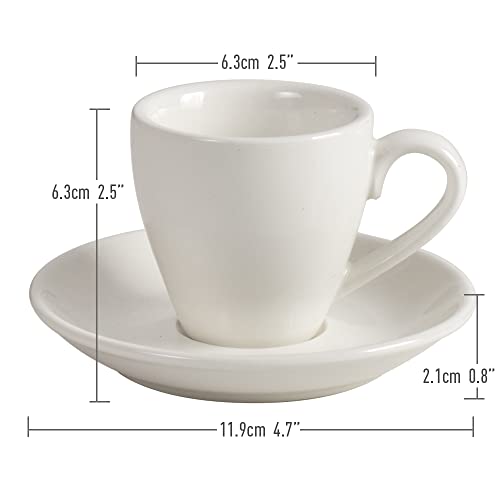 ionEgg Porcelain Espresso Cup with Saucer And Stainless Steel mini Spoons, Espresso shot Cup, 80ml/2.7Oz, Pack of 2, White