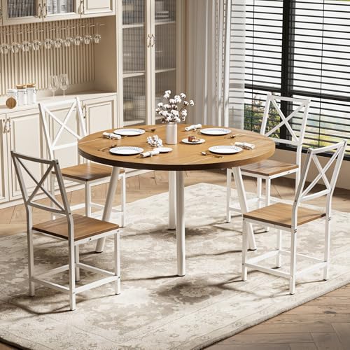 Stylish and Functional: This dining table set includes a round table and 4 chairs, so whether it's a casual family dinner or a lively gathering with friends, this set effortlessly adapts to your lifestyle