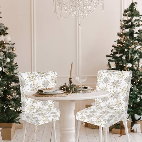 JarThenaAMCS 4Pcs Christmas Chair Covers Gold Silver Snowflake Dining Chair Slipcovers Winter Xmas Removable Seat Protector Covers for Party Home Kitchen Decor