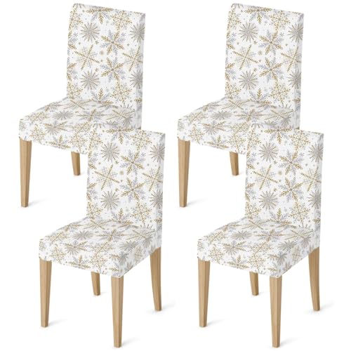 THE PACKAGE INCLUDES: 4Pcs Christmas theme chair covers with gold and silver snowflake design, enough quantity and delicate design to meet your needs.