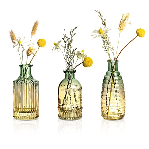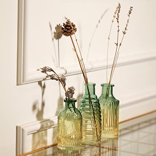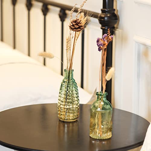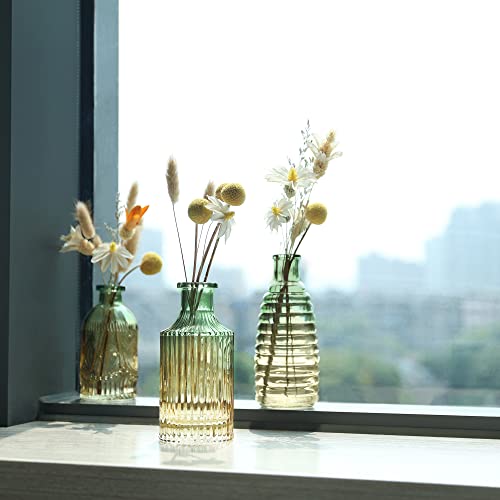 Quality Material: The height is 5.1"(13cm)/ 5.7"(14.5cm)/ 5.9"(15cm), and the base diameter is 2.5"(6.3cm)/ 2.8"(7cm)/ 2.3"(5.8cm). The vase is made of high guality glass to ensure durability and charm, and the bubbles are not quality problems, just feature of hand blown glass.