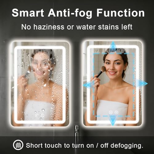 ANTI-FOG & IP54 WATERPROOF: this vanity mirror with lights has an expanded anti-fog pad on the back, that heats up to keep mirror fogless and clarity. One touch to defog helps make a perfect vanity mirror for makeup or shaving. IP54 waterproof ensures safe and durable lighting experience in humid bathroom environment.