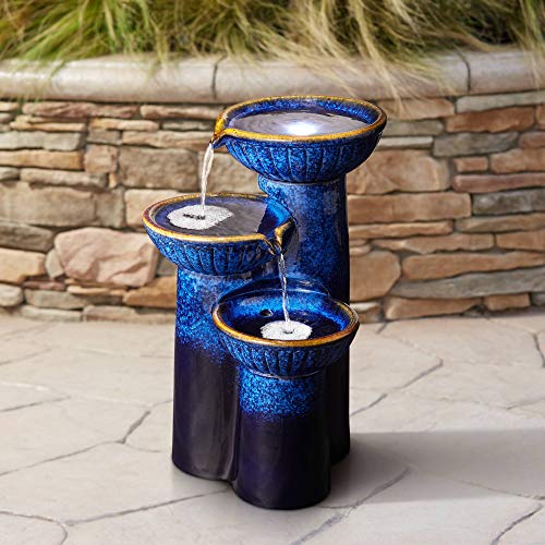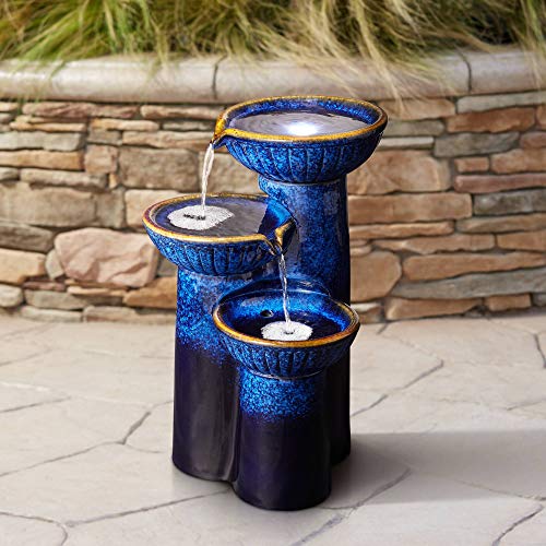 Decorative 3-column floor fountain. Built-in LED light in top bowl.
