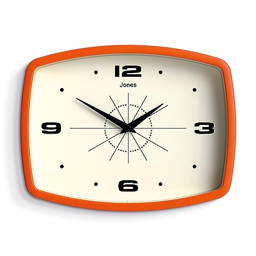 A Retro Rectangular wall clock in various bright colours. This retro style wall clock has a contemporary dial which means it will hang happily in retro or modern spaces including kitchen’s, living room’s and offices.