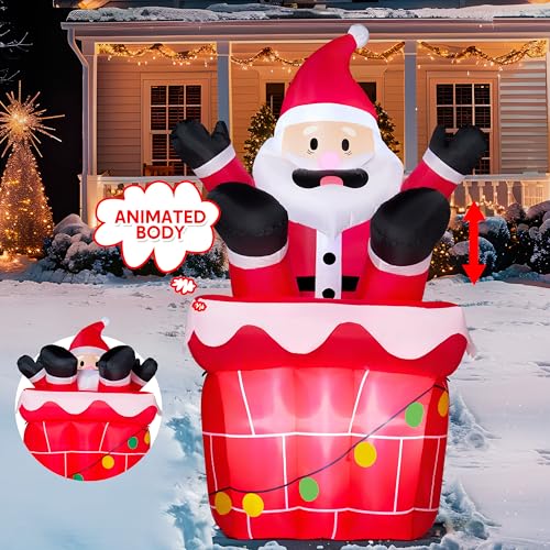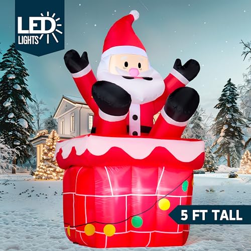 JOYIN 5 FT Tall Animated Christmas Inflatable Santa Outdoor Decorations, Christmas Blow Ups Santa Inflatable on Chimney for Yard, Blow Up Xmas Decor Outdoor with LEDs for Outside Lawn Garden Decor