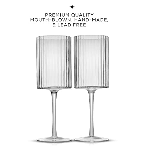 JoyJolt Fluted Wine Glasses – ELLE 17.5oz Red Set of 2 Big Long Stem Glasses. Unique, Stemmed Glass or Cocktail Vintage Style Drinking