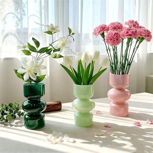 JSPYFITS Glass Hydroponic Flower Vase, 7 Inches Colored Glass Bubble Vase for Flower, Three-Layer Glass Funky Vase for Home/Office/Weddings/Party Table Flower Decor (Milky Green)