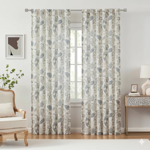 Jacobean Boho Floral Design: Featured with elaborately printed VINTAGE JACOBEAN FLORAL on a linen background, our PRINT curtains bring charm and decoration to any home decor. Perfect choice for your living room, bedroom, kitchen and so on.