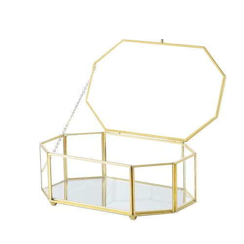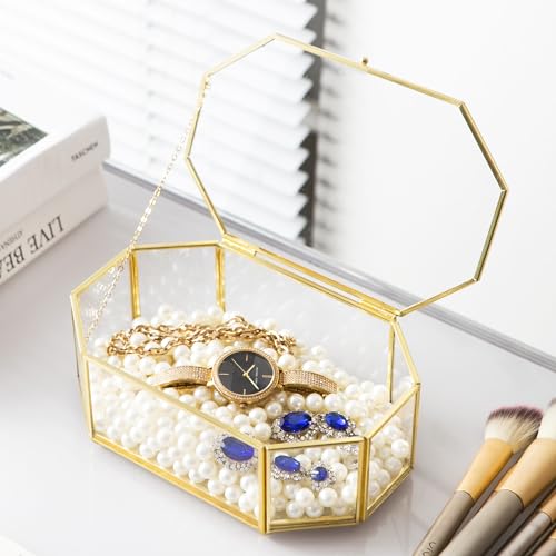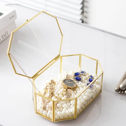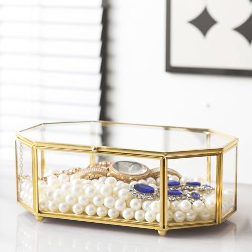 Multipurpose - The vintage jewelry box is made from high-quality glass, crafted with meticulous attention to detail, that showcases its elegance and durability. The octagonal jewelry case offers ample space to store and organize a variety of jewelry items, including rings, earrings, necklaces, bracelets, watch etc. The lid of the box fits snugly, ensuring the safety and protection of your precious accessories.