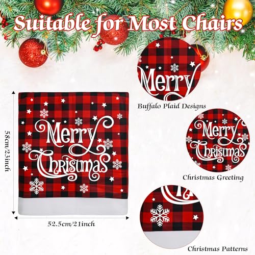 Package Includes: The Christmas chair slipcovers set includes 2 pcs red & black buffalo plaid chair back covers which measure approx 20.47 in(W) x 21.65 in(L).They are suitable for most standard armless chairs.Please confirm the size of the chair before purchasing.
