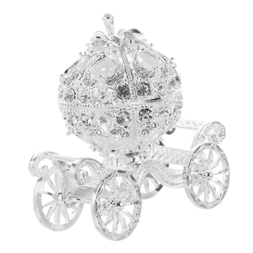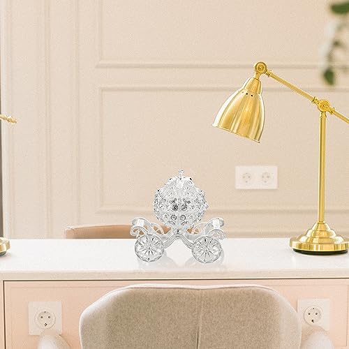 DECORATED: This trinket box is covered with silver rhinestones on both the pumpkin and the wheels
