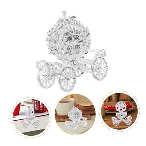 DECORATED: This trinket box is covered with silver rhinestones on both the pumpkin and the wheels