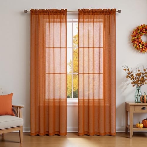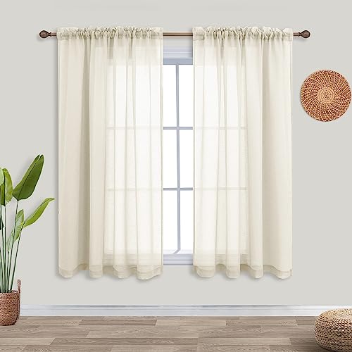 KOUFALL Linen Look Sheer Curtains