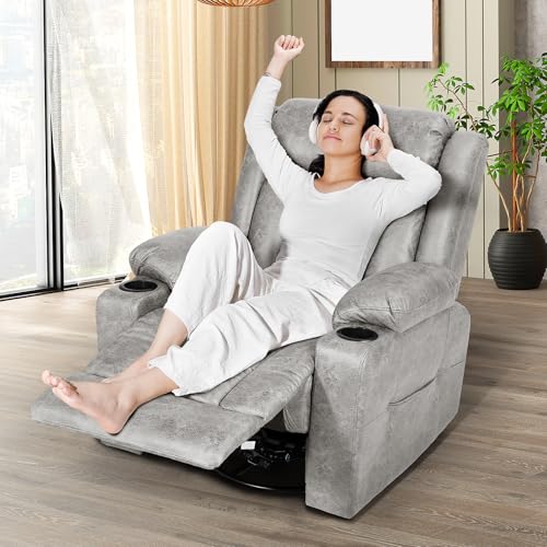 Swivel Rocker Recliner Chairs?Swivel recliner chairs for adults have 360° Swivel, 30° Rocking, and 90-150° angle reclining function for versatile use. Easily adjust the small rocker recliner chair by pulling out the lever located next to the armrest to activate the footrest. Note that the swivel recliner chair backrest smoothly retracts as you change positions.The swivel function adds an element of fun and entertainment and it fits into tight spaces for a comfortable experience.