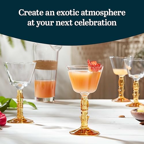 Vintage-style tiki mai tai wine glasses with amber colored stem add a touch of elegance to your next summer celebration or tropical party