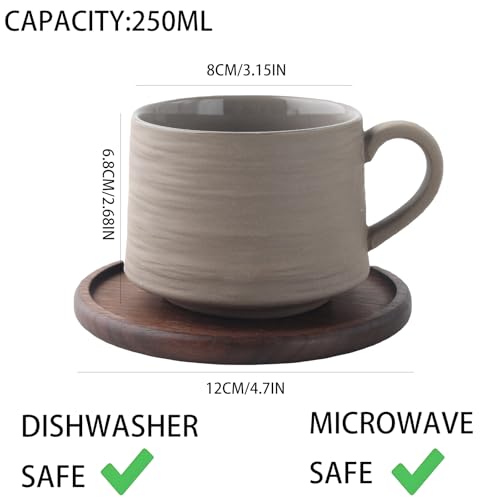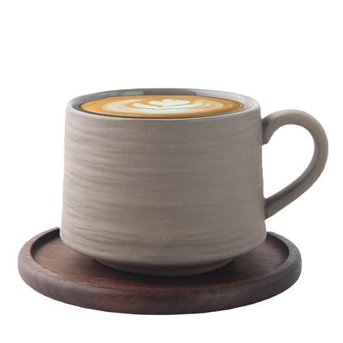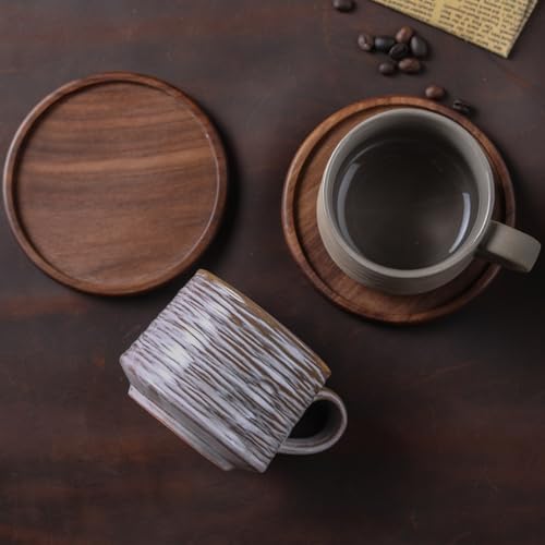 Ceramic Mug with Wooden Saucer Set: A premium ceramic mug paired with a natural black walnut wood Saucer, creating a harmonious blend of elegance and earthy charm for daily rituals. Note: The wooden tray is handcrafted from natural wood; handwashing is recommended to preserve its quality.