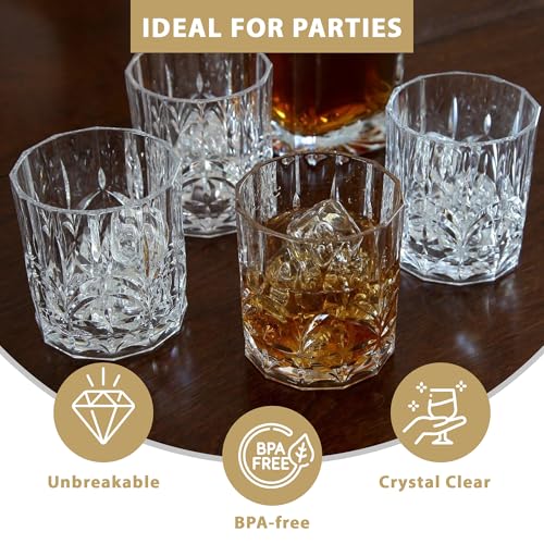 Lily's Home Unbreakable Acrylic Double Old Fashioned Whiskey Tumblers, Premium Glasses are Shatterproof and Ideal for Indoor or Outdoor Use, Reusable, Crystal Clear (13 Oz. Each, Set of 4)