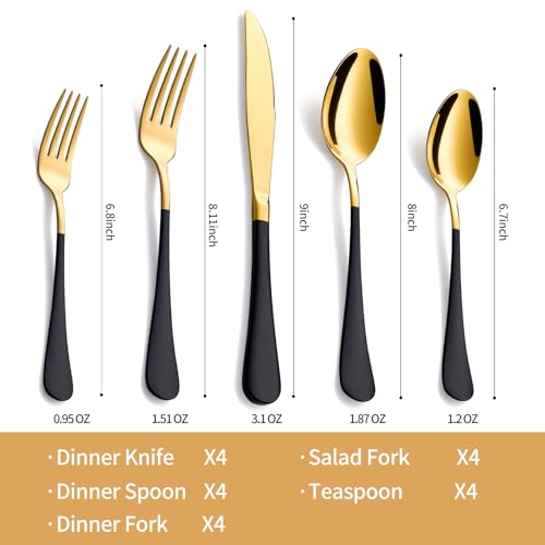 ?COMPLETE SET?: Contains include 4 Dinner Knives, 4 Dinner Forks, 4 Dinner Spoons, 4 Salad / Dessert Forks, 4 Teaspoons - all you need to set a beautiful table for meals.