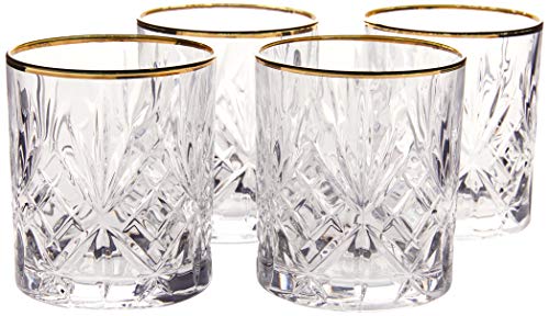 Lorren Home Trends Siena Collection Crystal Double Old Fashion Beverage Glass with Gold Band Design, Set of 4