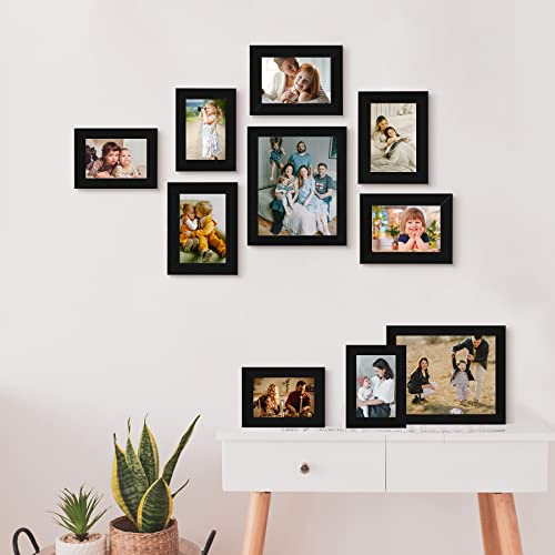 Multi-size: Black 10 pack picture frames set includes 2 pieces 8x10in, 4 pieces 5x7in and 4 pieces 4x6in photo frames. Just remember to peel off the protective film on both sides of the plexiglass.
