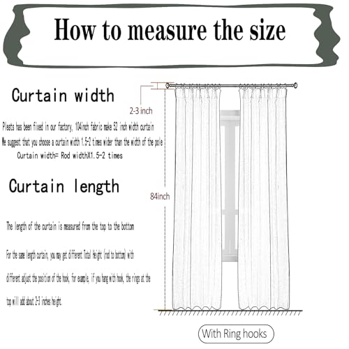 High-Quality Fabric: The sheer curtains are made of high quality woven fabric. The fabric is light, breathable, anti-wrinkle, elegant, drape well, scratch resistant, and friendly to families with pets.