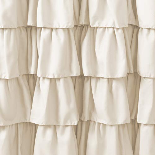 Lush Decor Ruffle Shower Curtain | Floral Textured Vintage Chic Farmhouse Style Design, Ivory, 72" x 72"