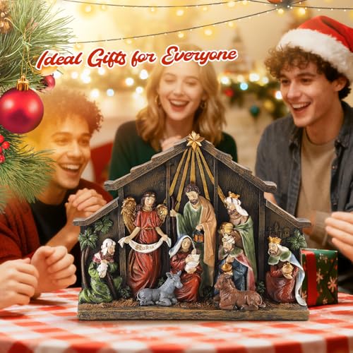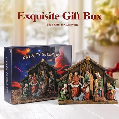 ???????????????????????????????????? ???????????????????????????????? ????????????: This nativity sets decoration showcases the latest in design innovation.Size is 10.83*2.36*8.27inch. It is a good gift for family and friends that receive this gift will experience unparalleled joy