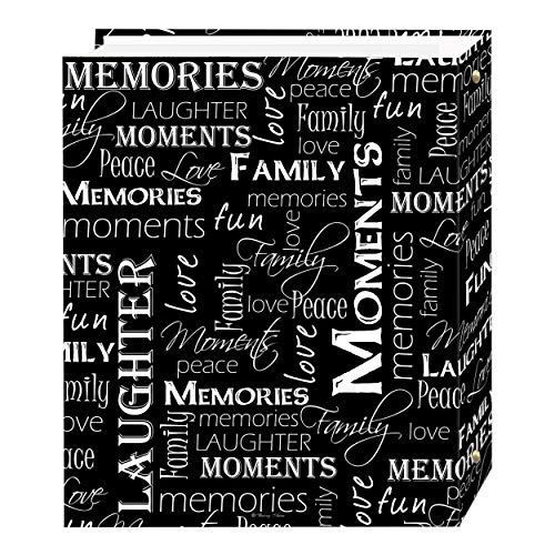 Magnetic Self-Stick 3-Ring Photo Album 100 Pages (50 Sheets), Black & White Words Design