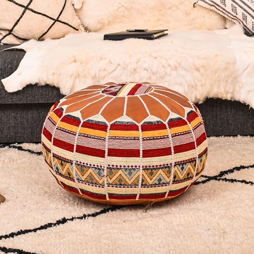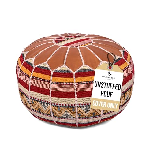 Quick and Easy Customizable Filling: Our Moroccan leather poufs are shipped unstuffed and feature a zippered back, making them quick and easy to fill. You can choose from a variety of filling options, such as polyester or cotton fiber, old towels, poly fill, bubble wrap, cotton batting, fabric remnants, blankets, used clothes, cushions, pillows, and more. The pouf supports up to 10 - 12 lbs. of filling, allowing you to achieve the perfect level of firmness and comfort.
