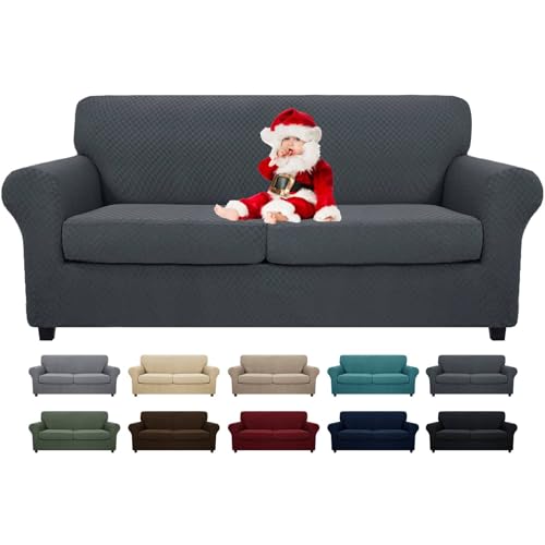 MAXIJIN 3 Piece Stretch Couch Covers for 2 Cushion Couch Sofa Slipcovers with 2 Extra Large Seat Cushion Couch Jacquard Loveseat Sofa Couch Cover for Dogs (2 Cushion Sofa, Dark Gray)