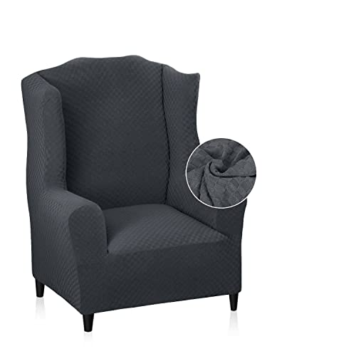 MAXIJIN Newest Jacquard Wingback Chair Covers 1-Piece Stretch Wing Chair Covers Soft Thick Wingback Armchair Slipcover Chair Furniture Protector Cover Washable (Wing Chair, Dark Gray)